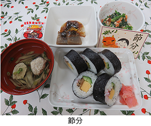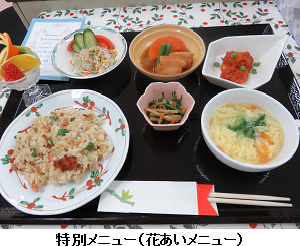 献立は季節感を盛り込み、旬の食材を取り入れた様々な行事食を実施し、メッセージカードを添えて提供しております。