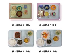 常食、加熱食、ハーフ食の患者さまには、選べる献立の日(水曜・木曜・金曜の朝食と夕食)に選択できるメニューを提供させていただいております。