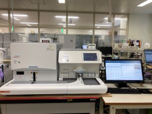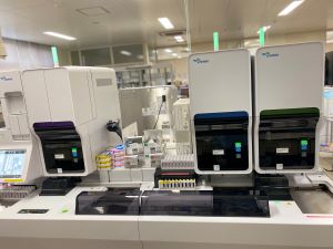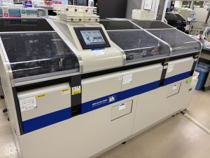 | 生化学検査全般(AST・ALTなどで肝機能,UN・Creなどで腎機能に異常がないかのスクリーニング検査や血糖・ヘモグロビンA1cなどの糖尿病関連検査など), 免疫・感染症検査(HBsAb・Ag,HCV,HTLV-Ⅰ,FT3・FT4,TSHなどや各種腫瘍マーカ検査など) | 血液(血算、網状赤血球、機器白血球分類),凝固・線溶系検査,血液沈降速度等 | 血液型,不規則性抗体検査,交差適合試験,直接クームス検査,輸血製剤管理など | 顕微鏡検査(病理組織検査,細胞診断検査),病理解剖など |
